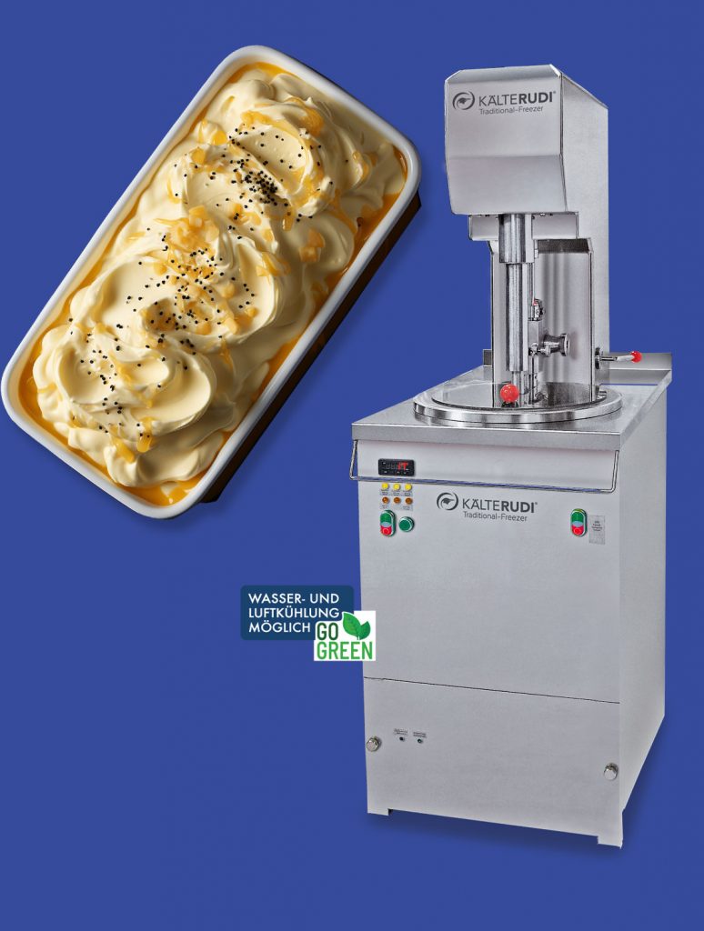 Der TRADITIONAL-FREEZER gefriert das Eis bis zur Endkonsistenz, sodass es direkt aus der Maschine in die Theke gefüllt werden kann. Ein Nachfrosten ist nicht erforderlich.